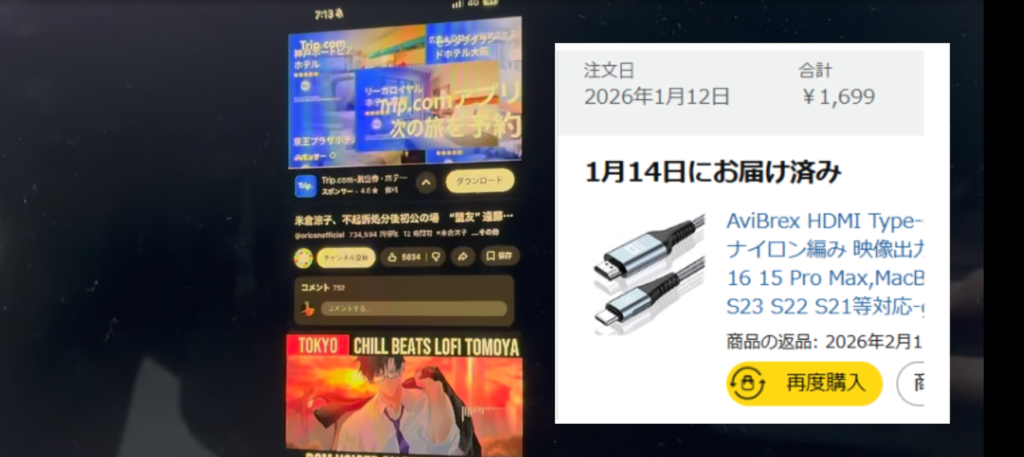 そこで我が家では、**HDMI一体型ケーブル(約1,699円)**を使用。